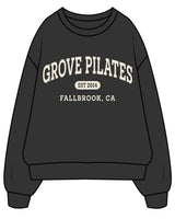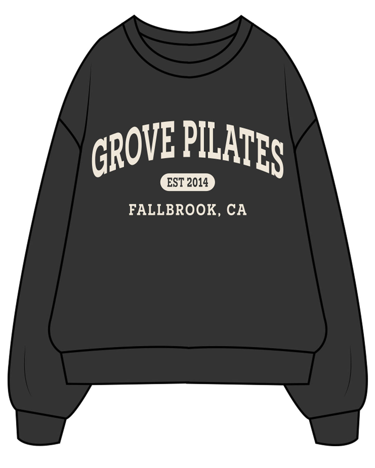 The Womens Crewneck - Washed Black - Grove Pilates - Center Chest Stacked - Cream #f0e7d9