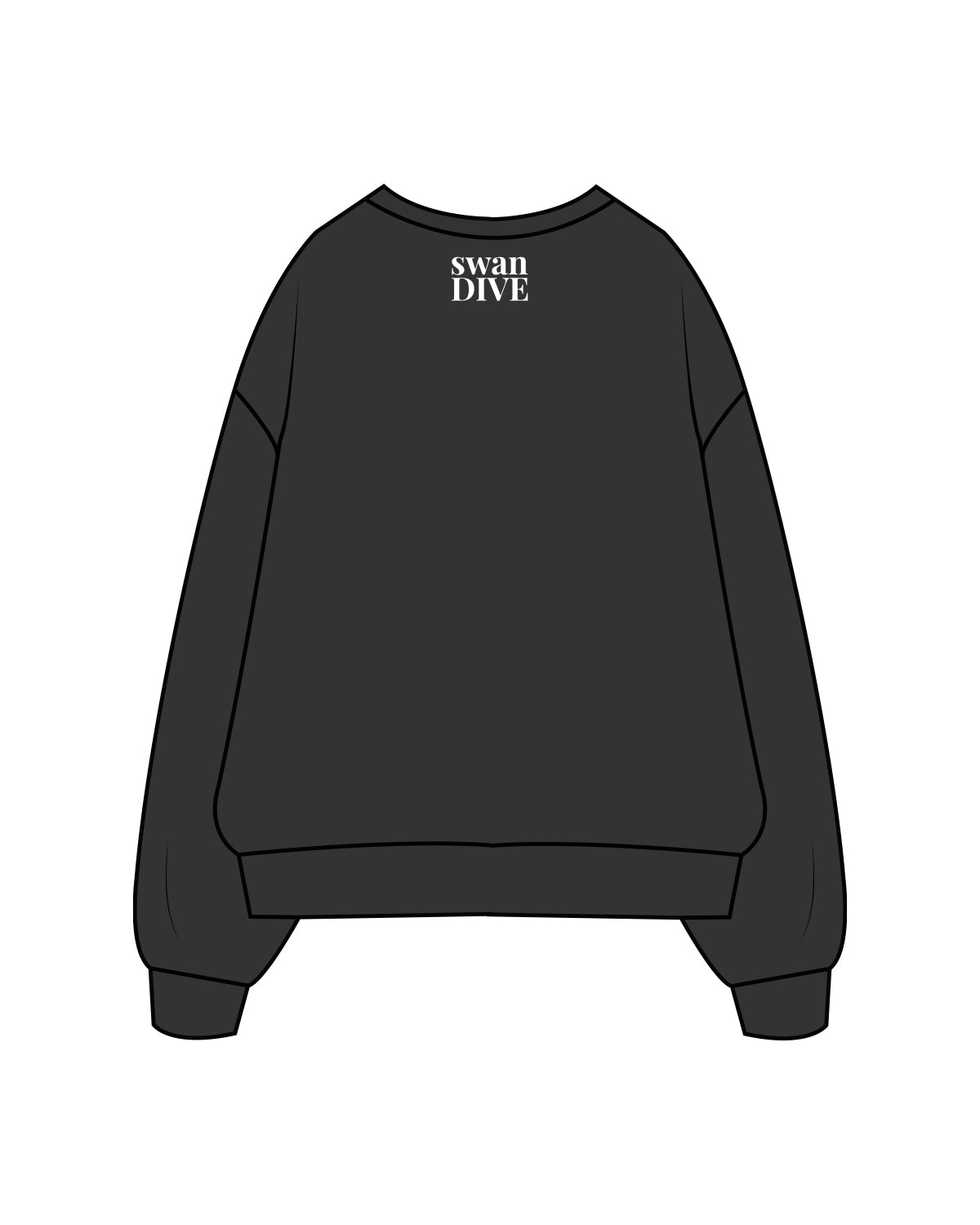 The Womens Crewneck - Washed Black - Swan Dive - Center Chest & Back Neckline - Full Color
