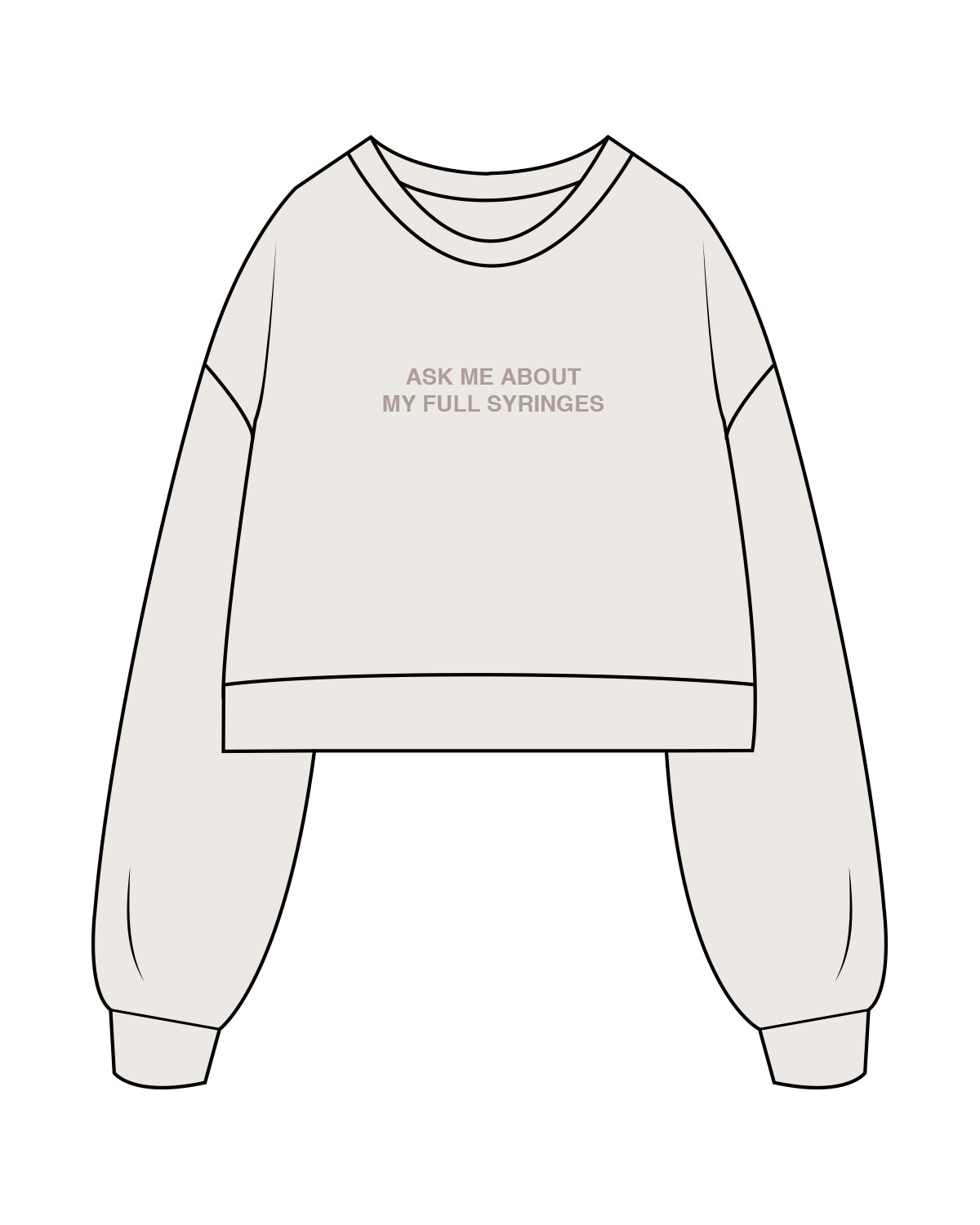 The Womens Crop Crewneck - Bone - Aesthetics Injector - Center Chest " ASK ME " - Tone on Tone