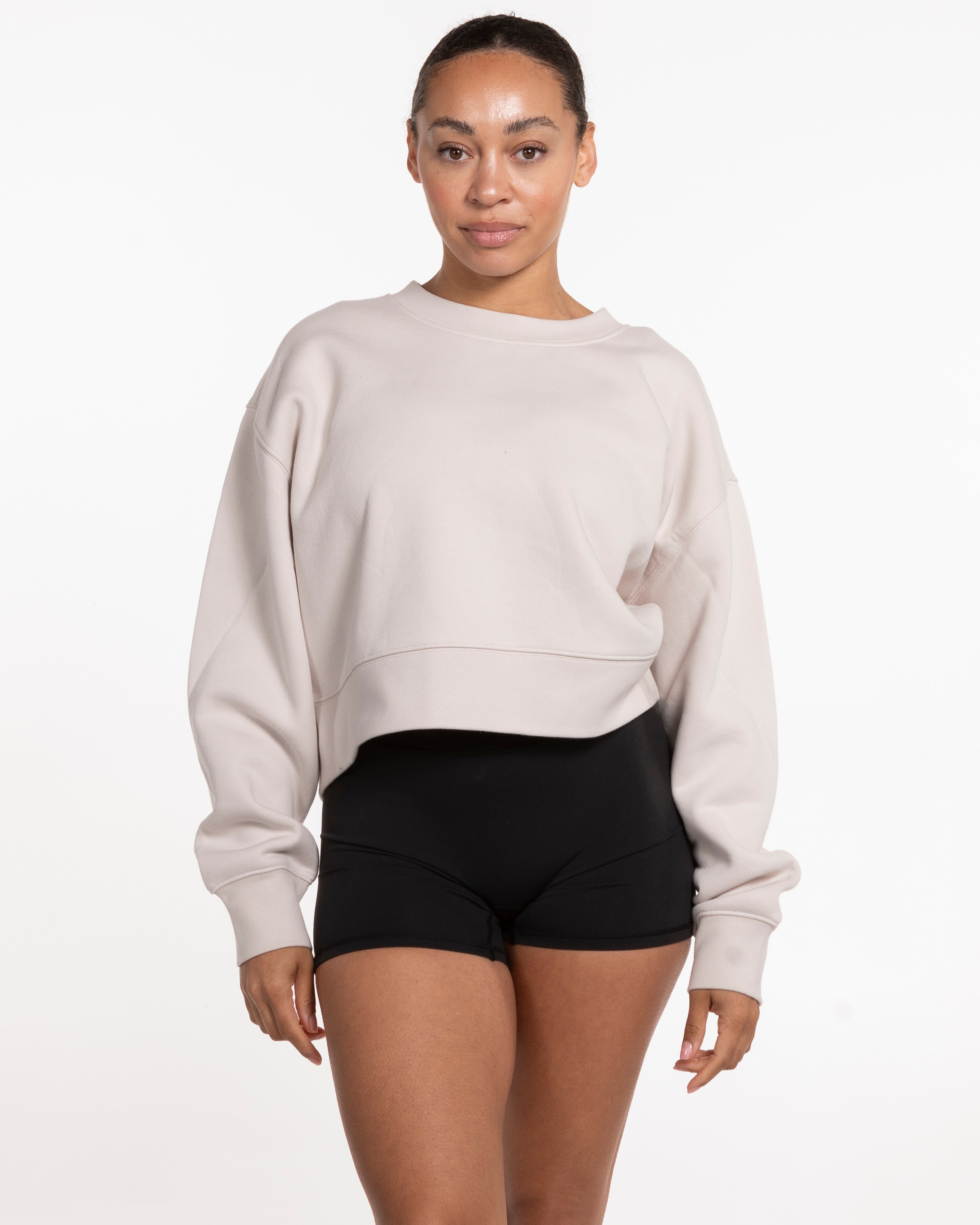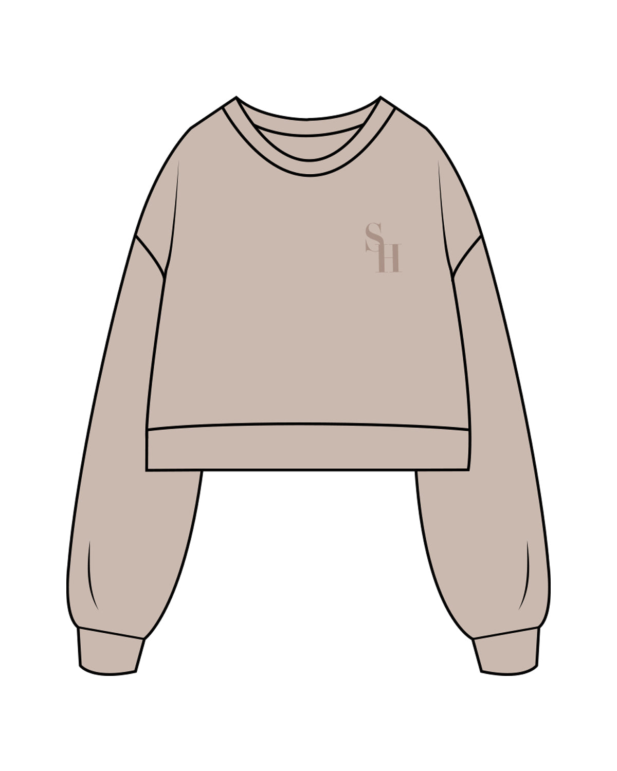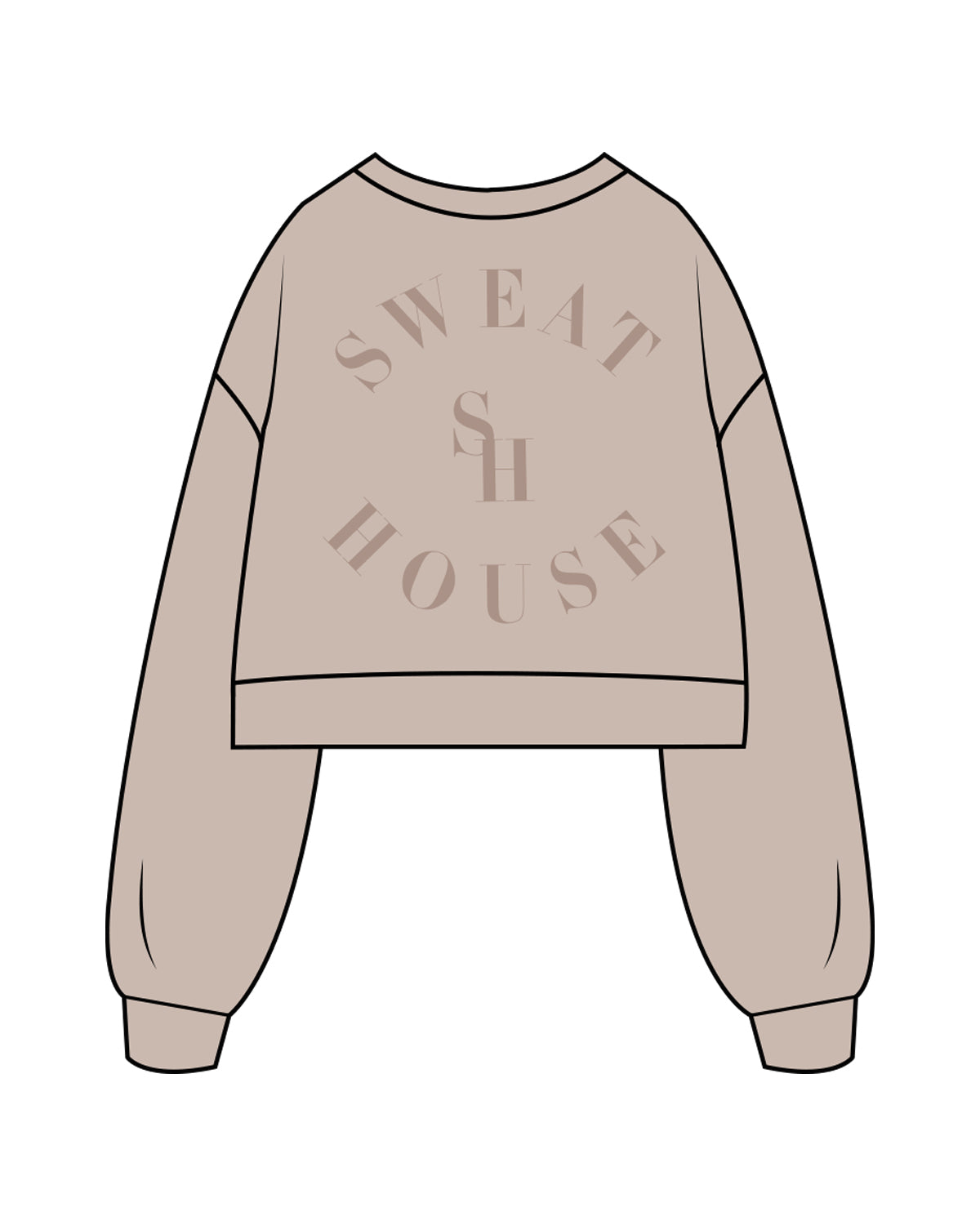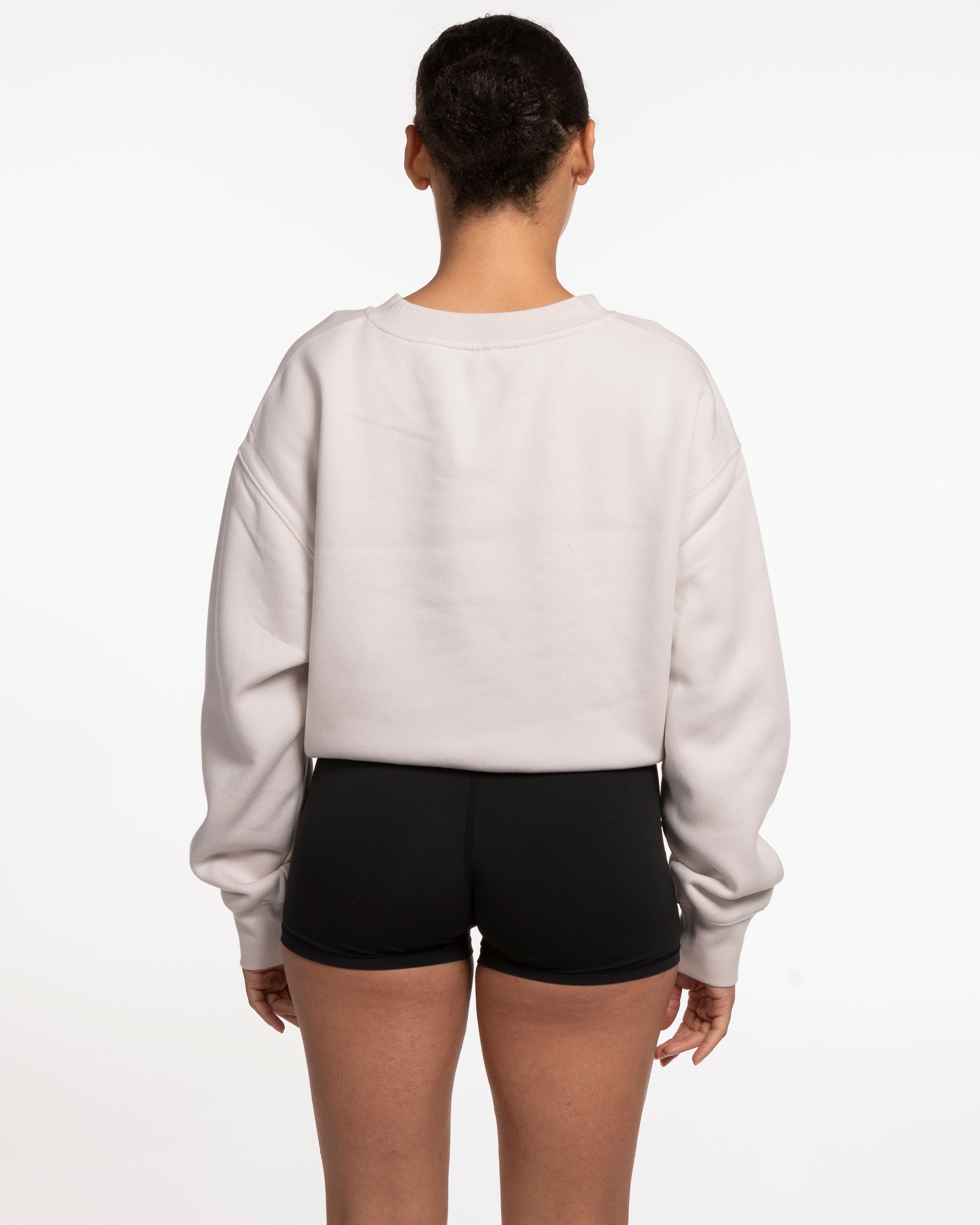 The Womens Crop Crewneck - Bone - Sweathouse - Left Chest & Back Center Stacked - Tone on Tone