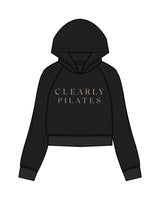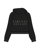 The Womens Crop Hoodie - Black - Clearly Pilates - Center Chest Stacked & Back Center Mirror - Bone