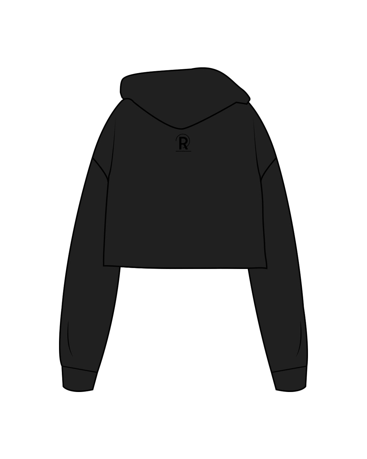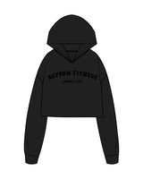 The Womens Crop Hoodie - Black - Reform Fitness - Center Chest Stacked & Back Center Neckline - Tone on Tone