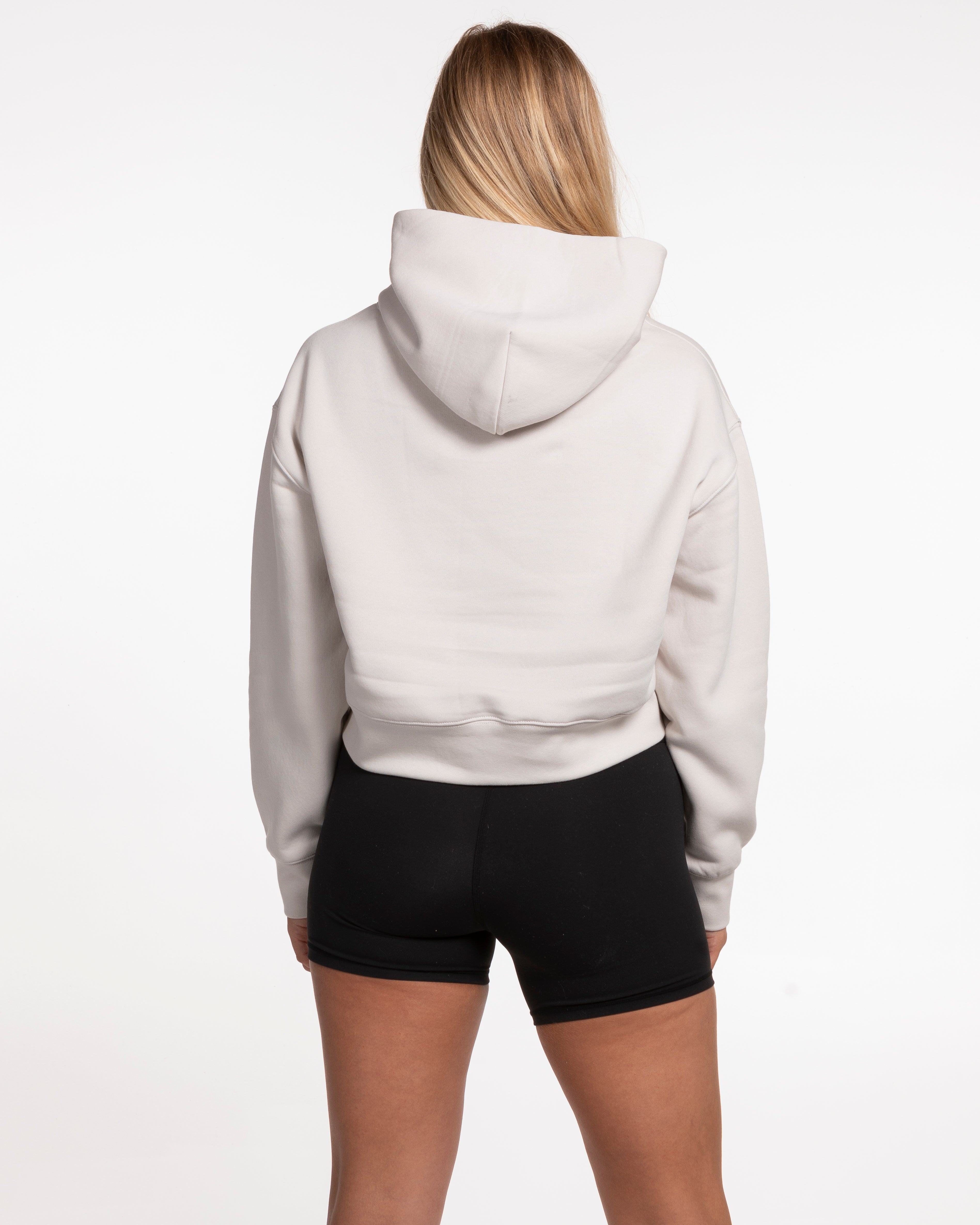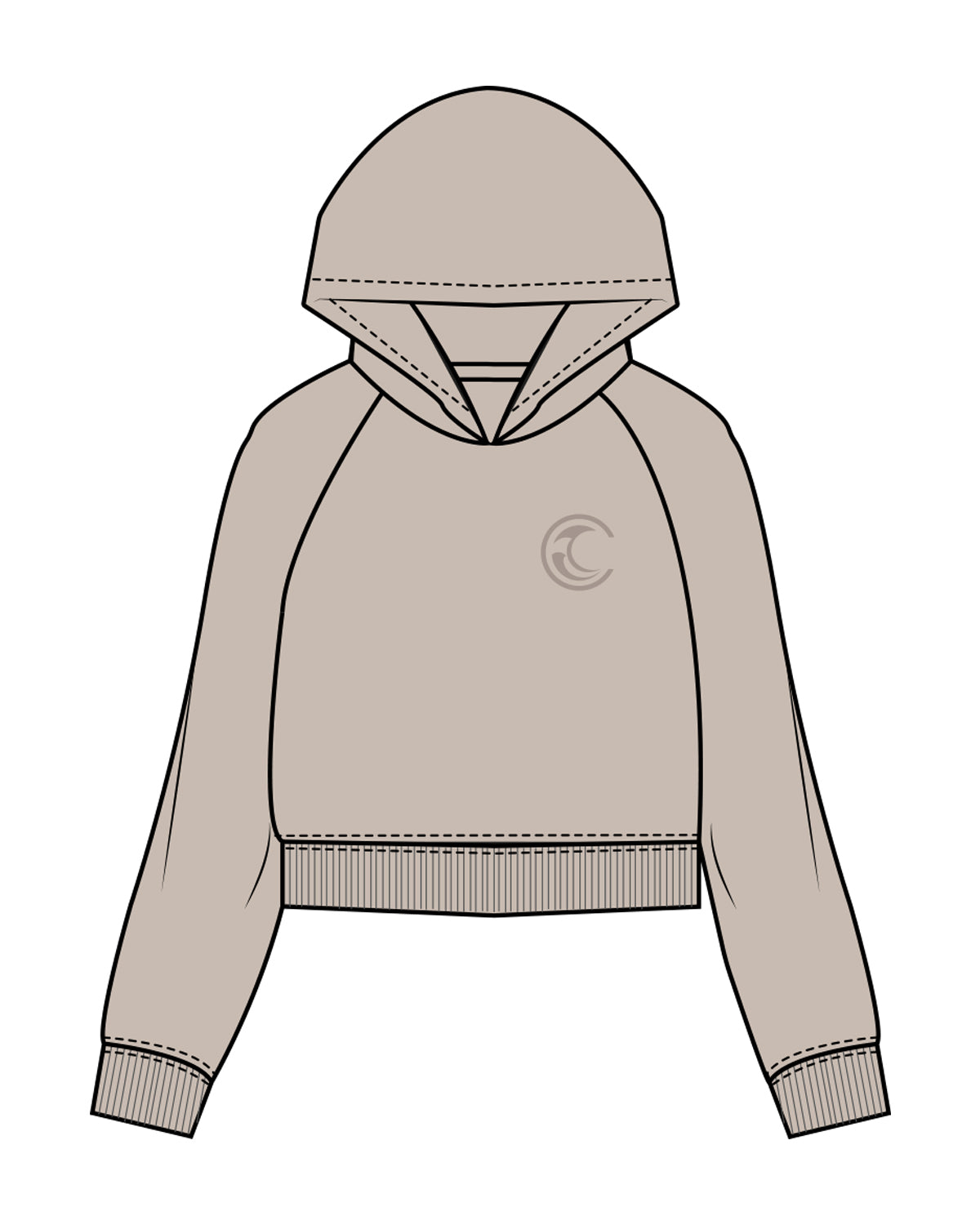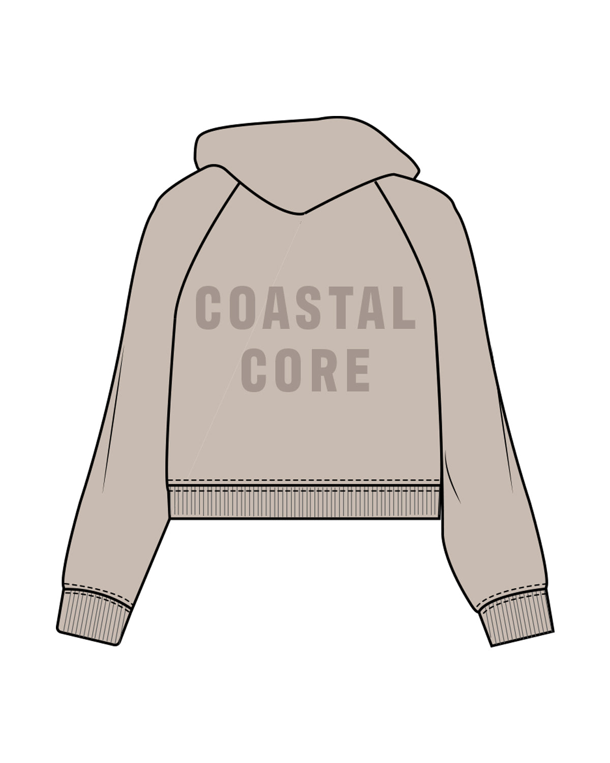 The Womens Crop Hoodie - Bone - Coastal Core - Left Chest - Icon - Back Center Stacked - Tone on Tone