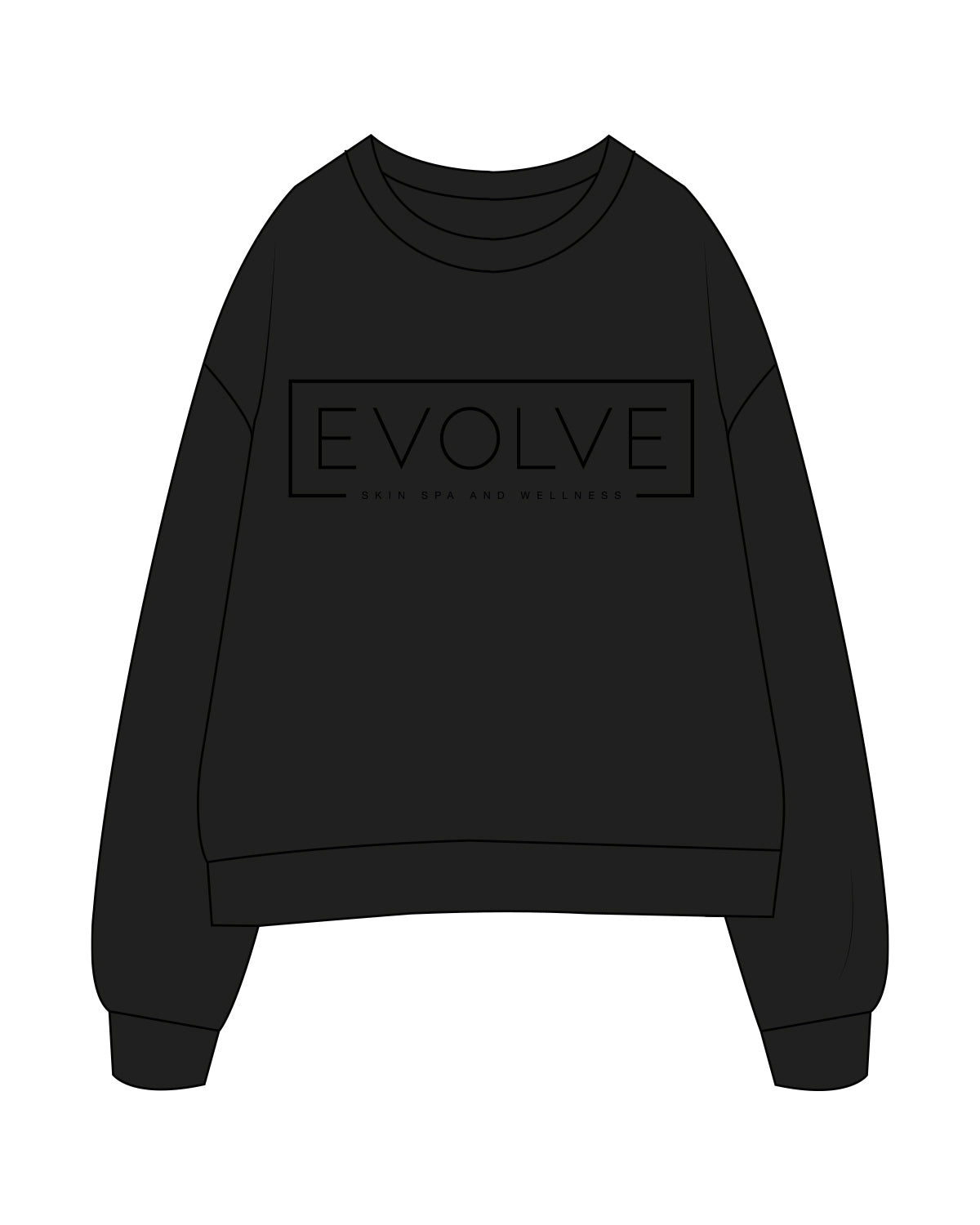 The Womens Heavy Crewneck - Black - Evolve Spa - Center Chest Stacked - Embroidered - Tone on Tone