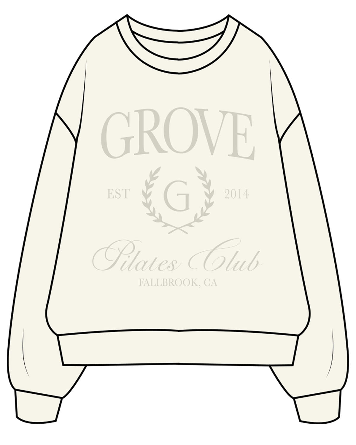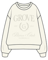 The Womens Heavy Crewneck - Off White - Grove Pilates - Center Chest Stacked & Back Neckline - Tone on Tone
