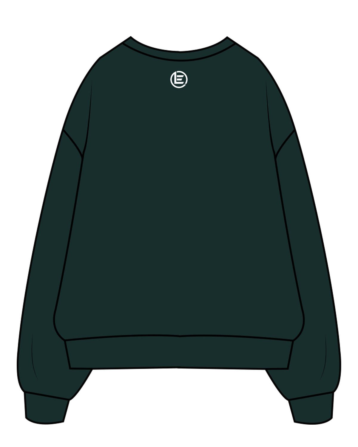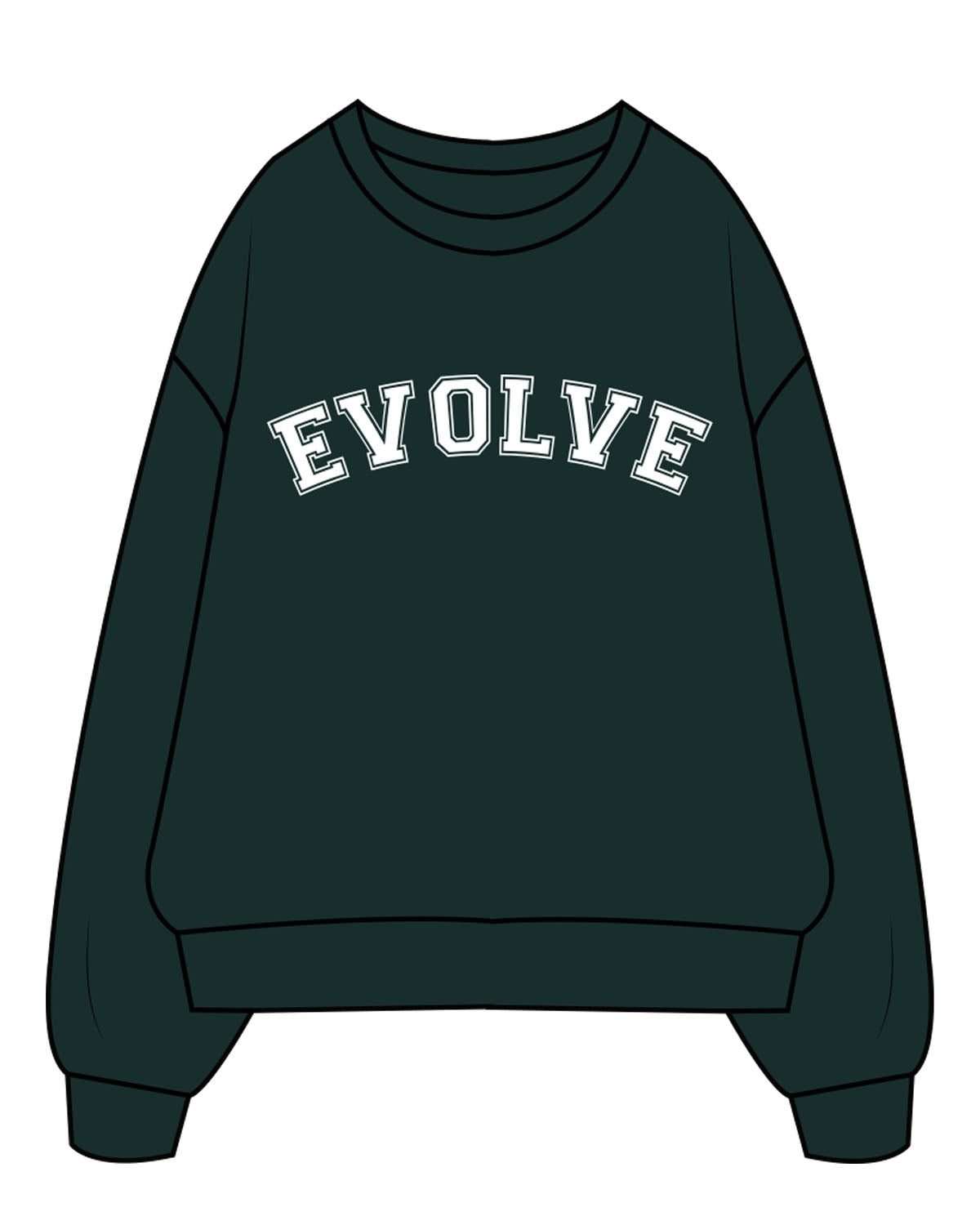 The Womens Heavy Crewneck - Pine Green - Evolve Lagree - Center Chest & Back Neckline - White