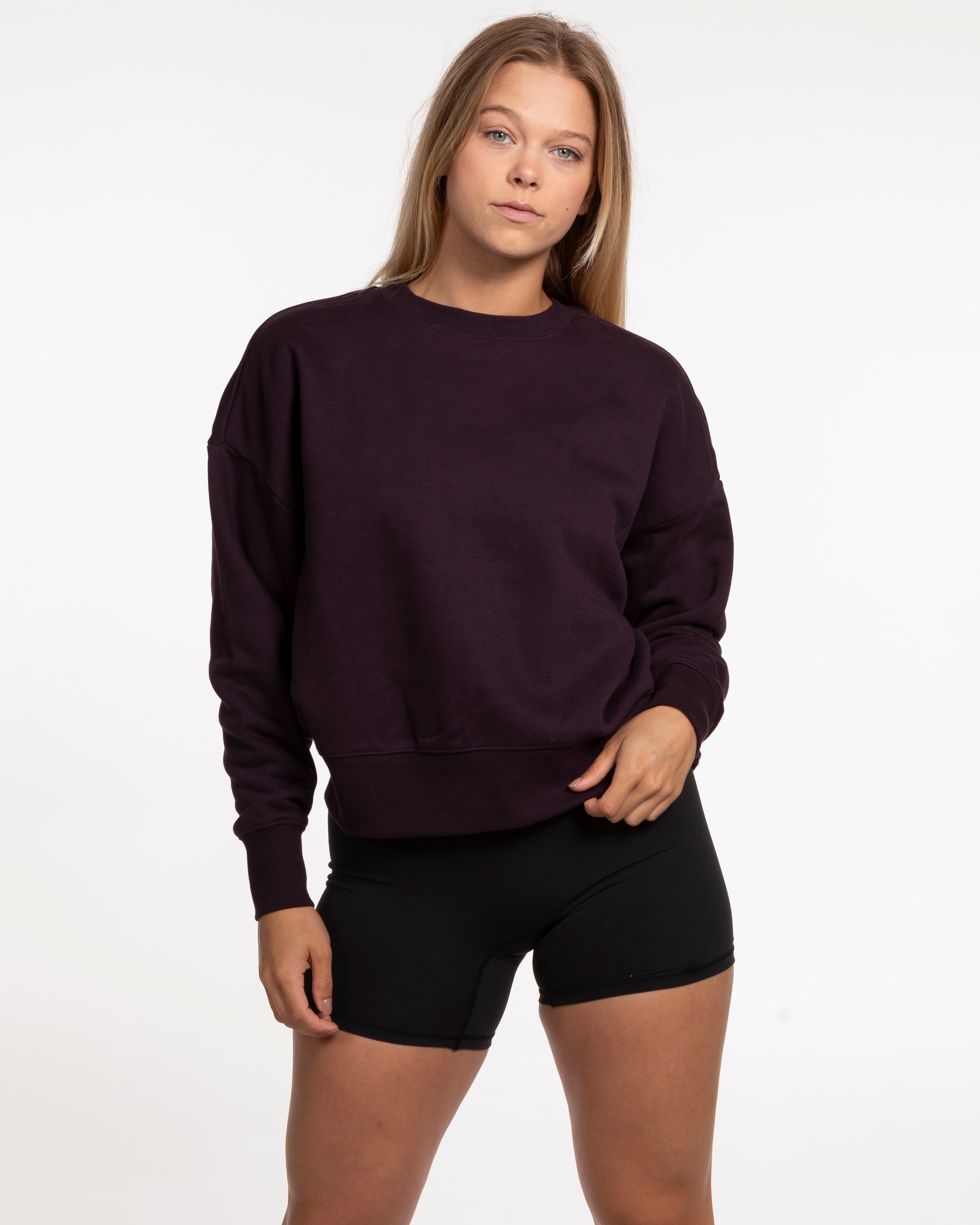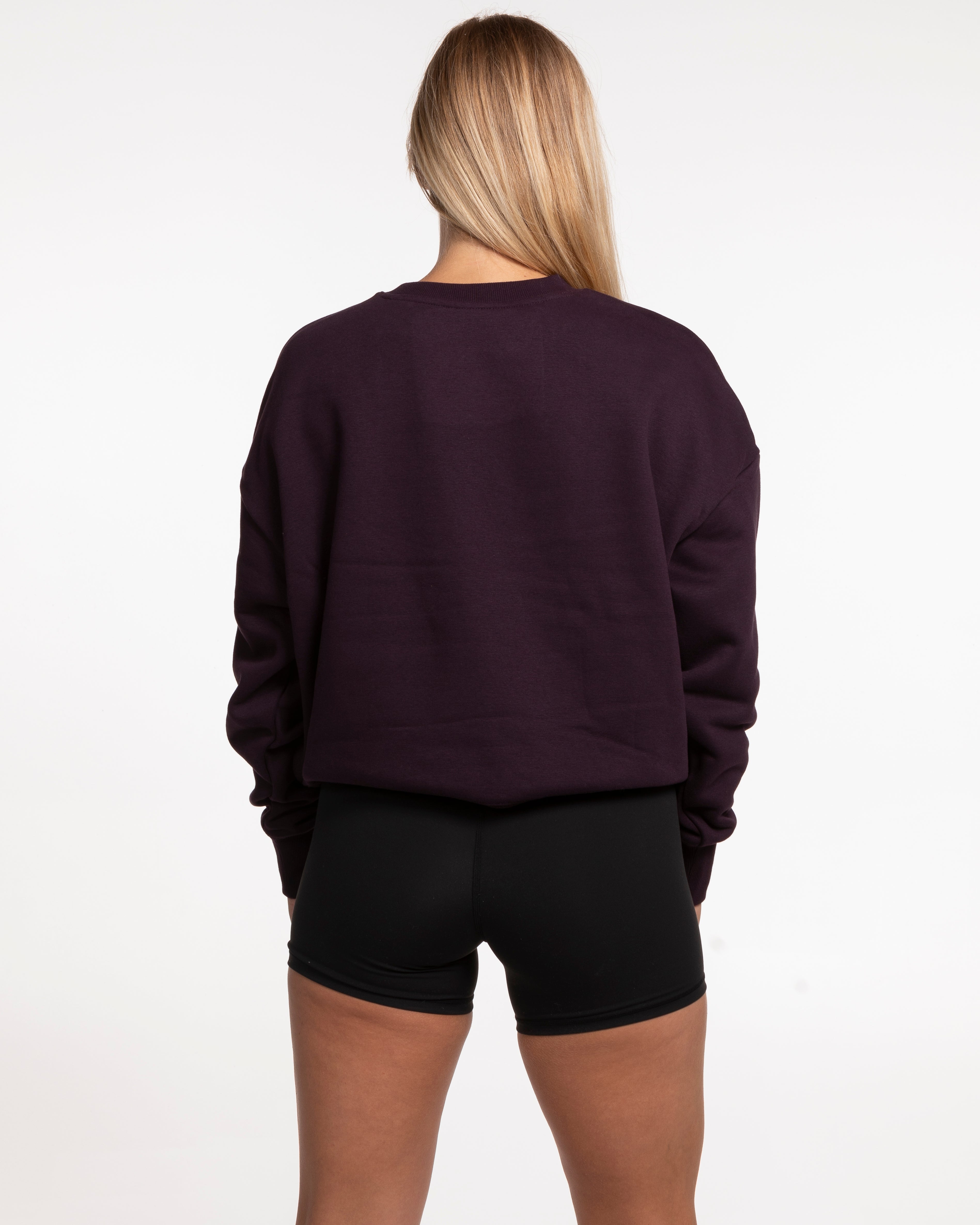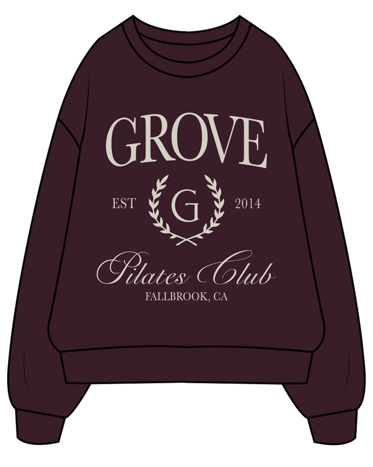 The Womens Heavy Crewneck - Plum - Grove Pilates - Center Chest Stacked & Back Neckline - Cream