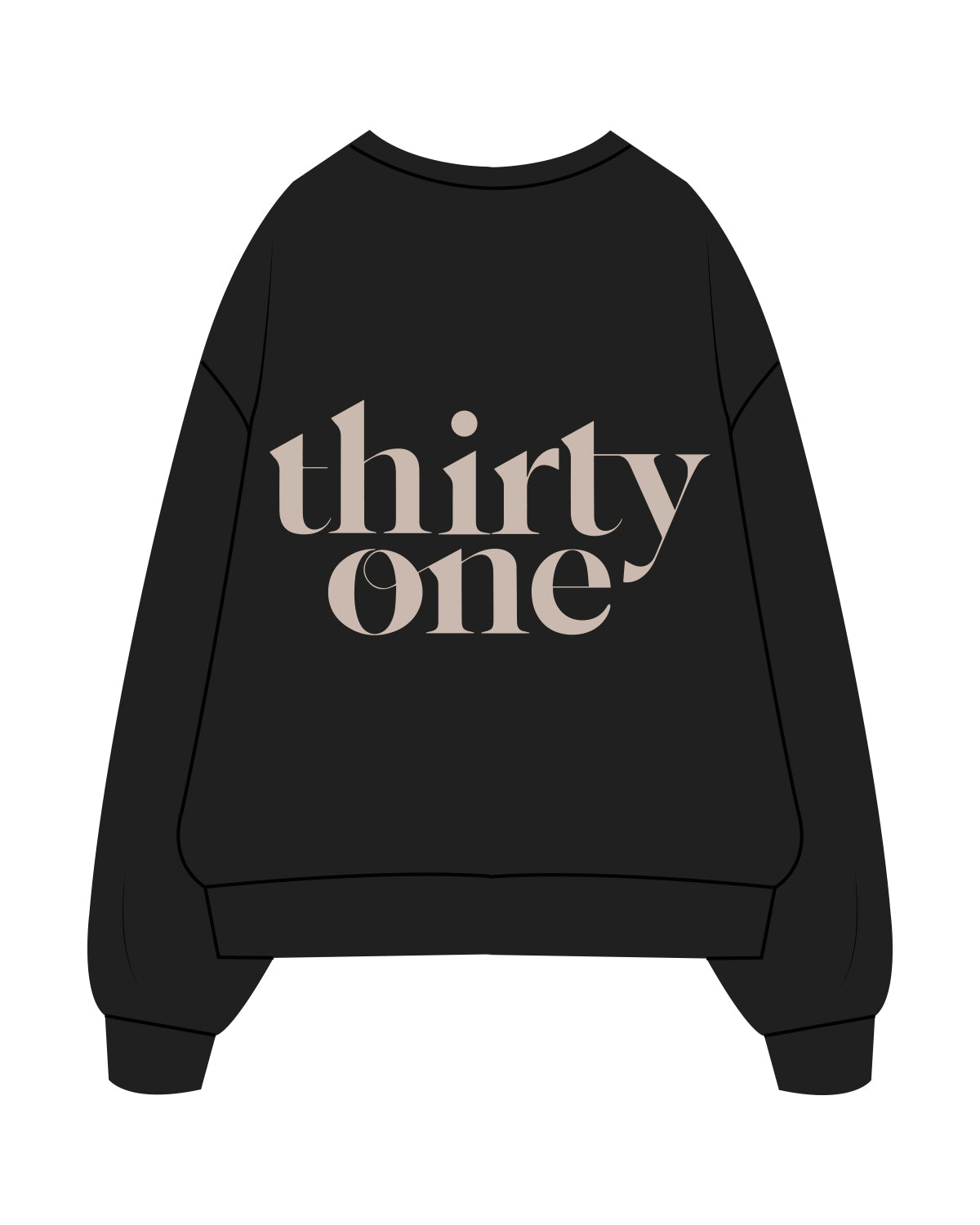The Womens Heavyweight Crewneck - Black - 31Theraphy - Center Chest Stacked - Bone