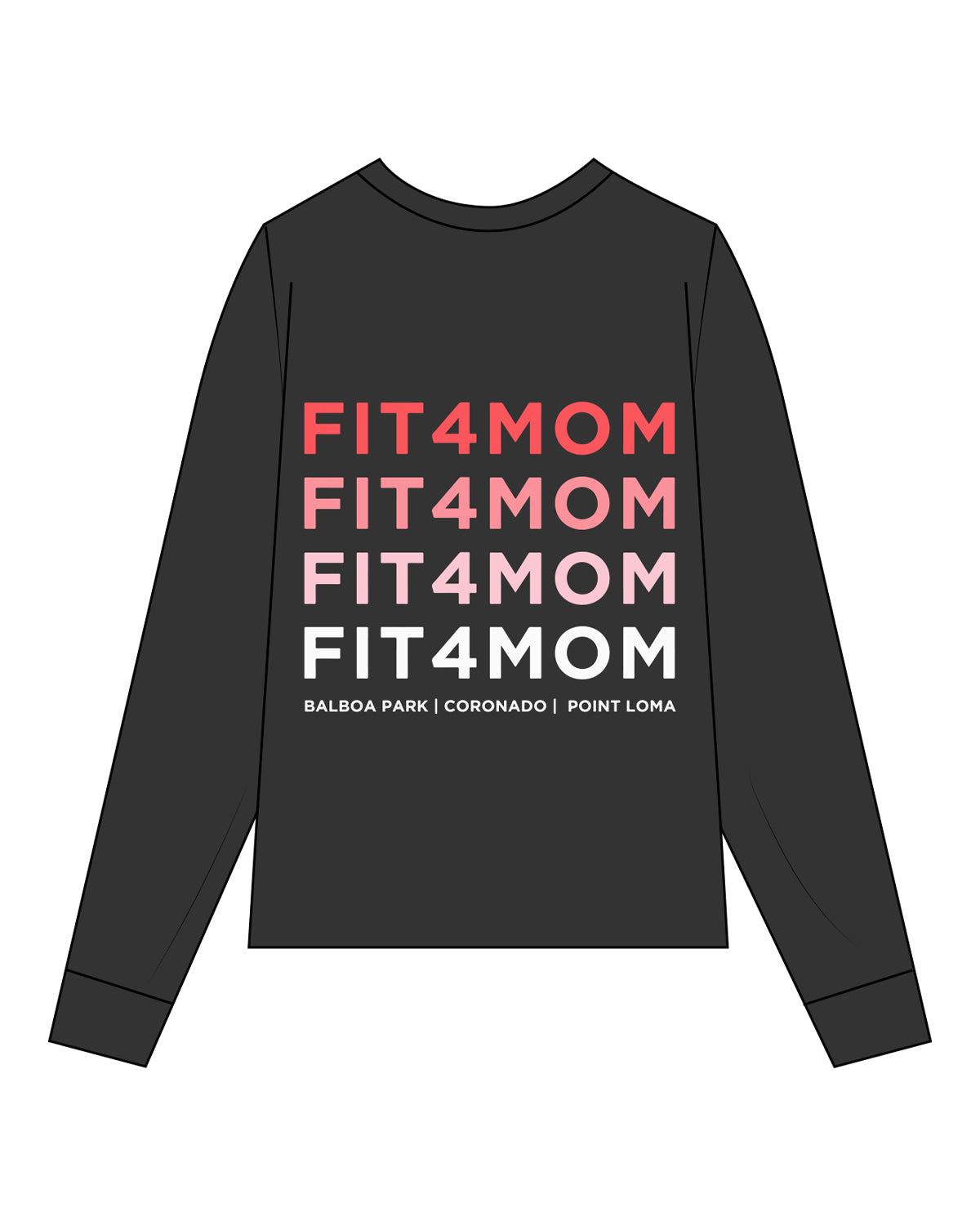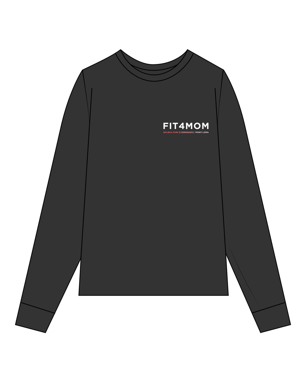 The Womens Heavyweight Long Sleeve - Washed Black - FIT4MOMBalboa - Left Chest & Back Stacked - Full Color