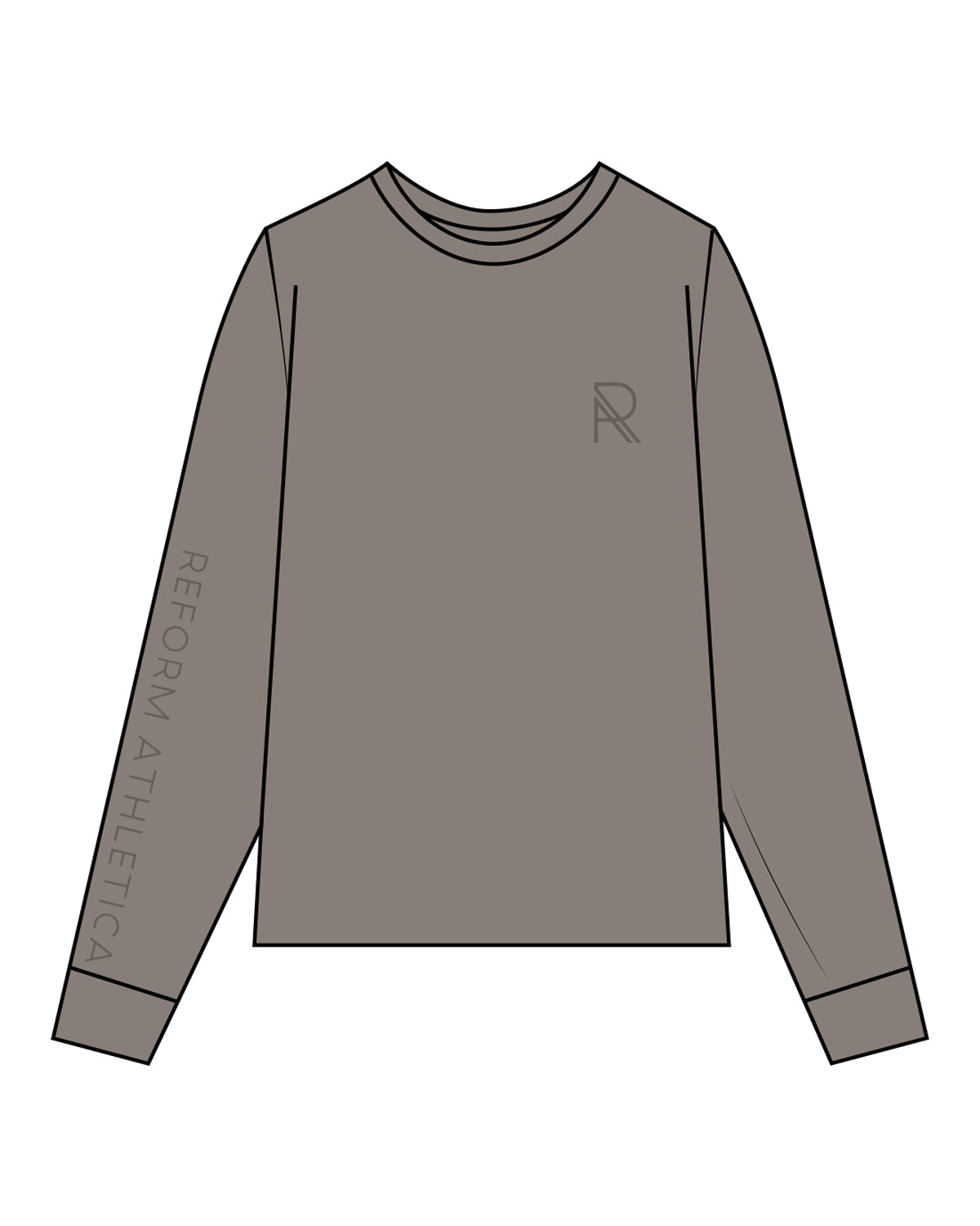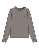 The Womens Heavyweight Long Sleeve - Washed Gray - Reform Athletica - Right Sleeve - Left Chest - R - Tone on Tone