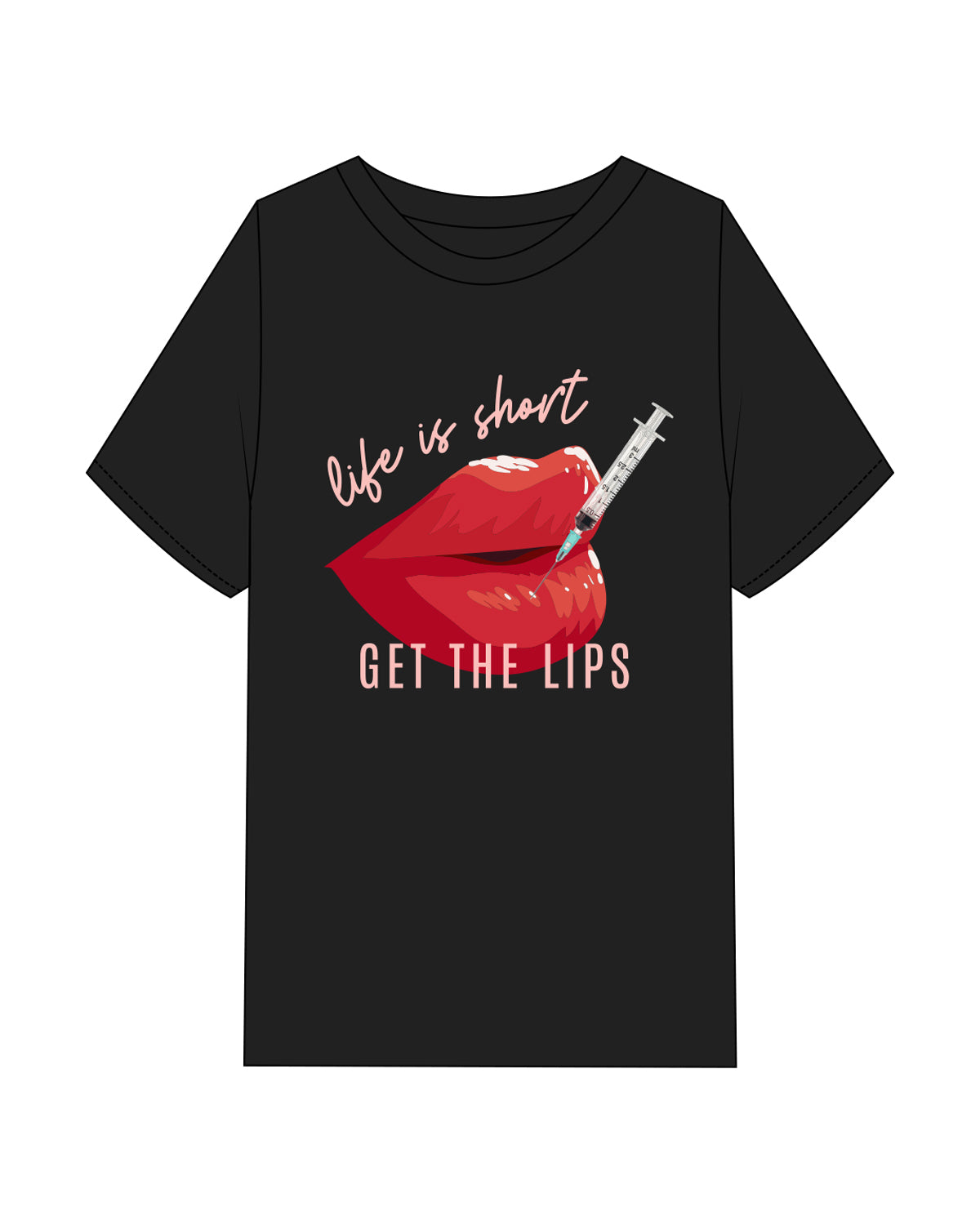 The Womens Heavyweight Tee - Black - HTB Aesthetics - Center Chest - Lips & Injection - Full Color