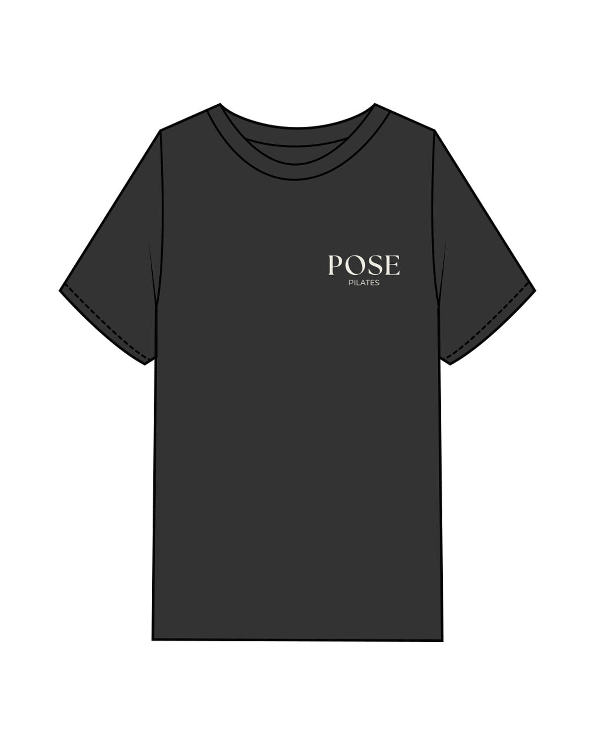 The Womens Heavyweight Tee - Washed Black - Pose Pilates - Left Chest Stacked & Back Center - Off White
