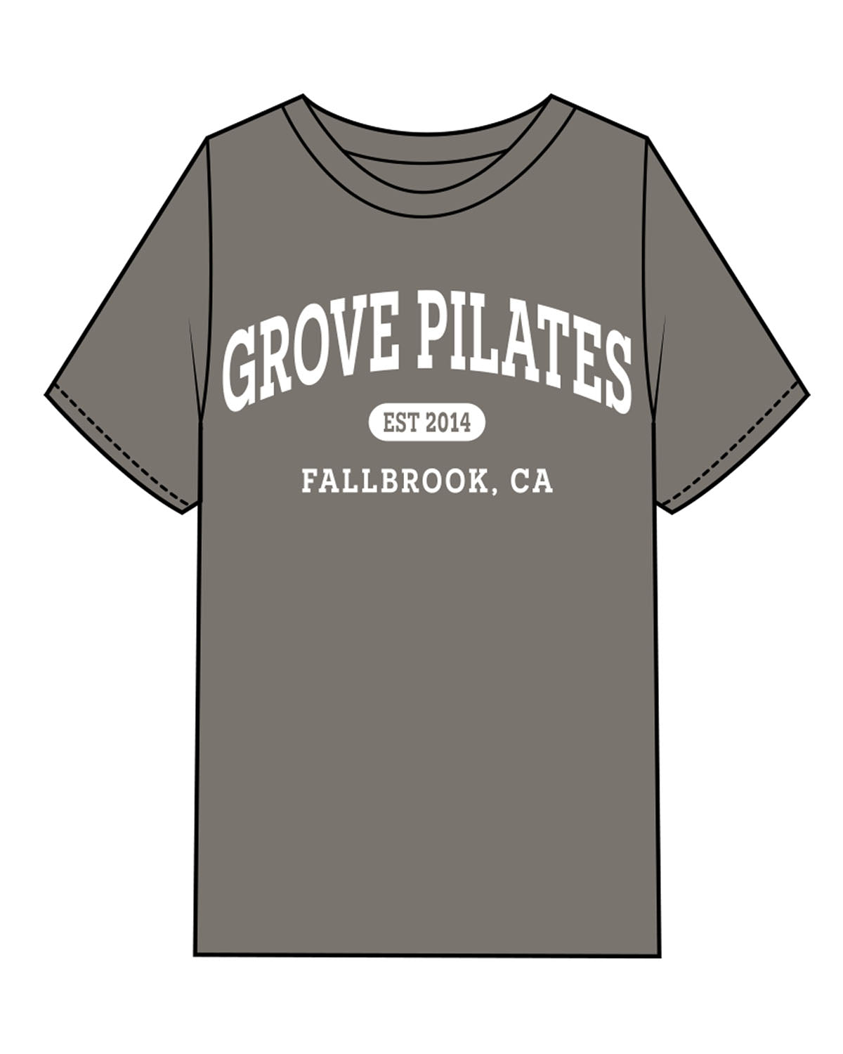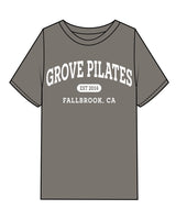 The Womens Heavyweight Tee - Washed Gray - Grove Pilates - Center Chest Stacked & Back Neckline - White