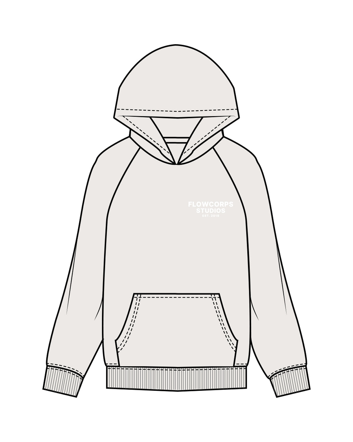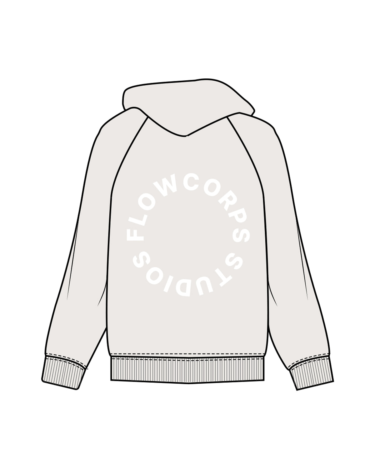 The Womens Hoodie - Bone - Flowcorps - Left Chest Stacked & Back Round - Puff Print White