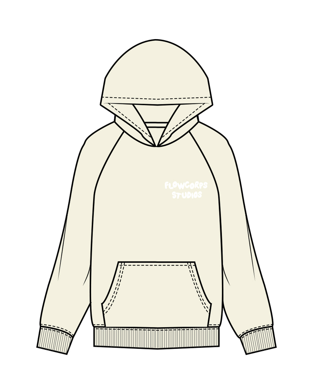 The Womens Hoodie - Butter - Flowcorps - Left Chest Stacked - Puff Print White