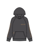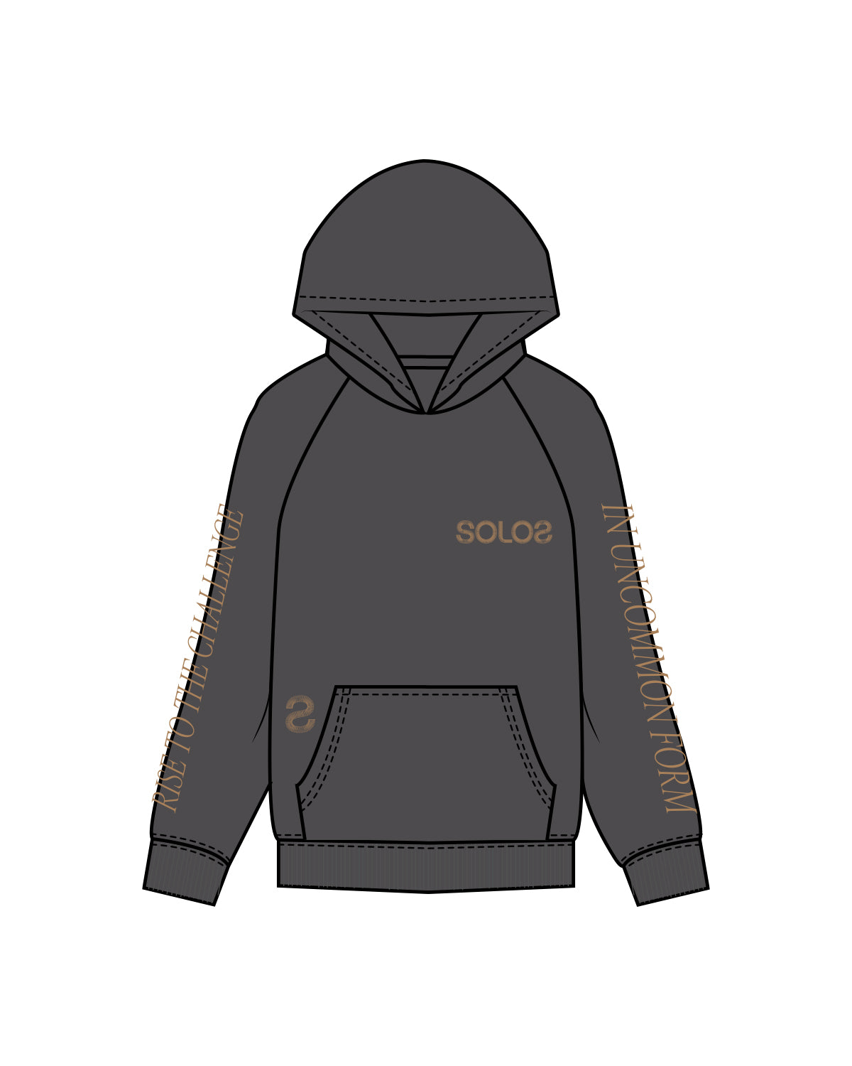 The Womens Hoodie - Washed Black - Solos Pilates - Left Chest & Both Sleeves - Terracota