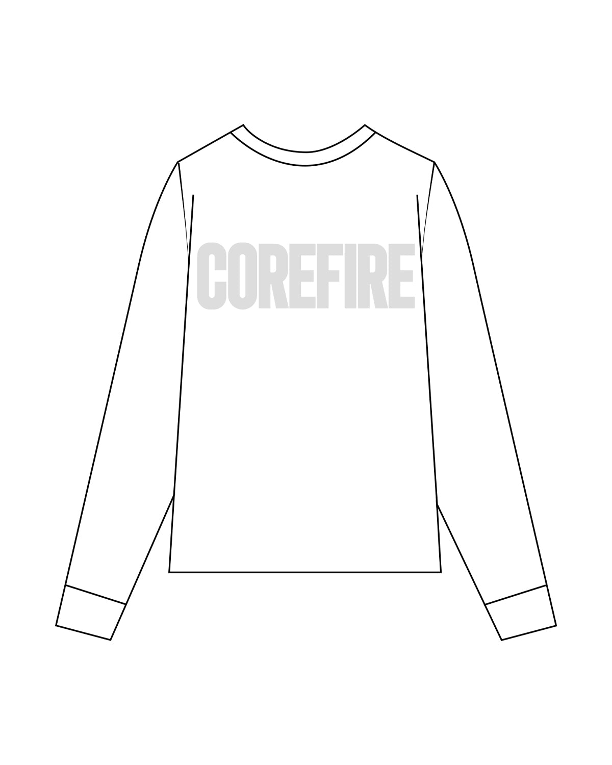 The Womens Long Sleeve - White - Corefire - Left Chest & Back Center - Full Color