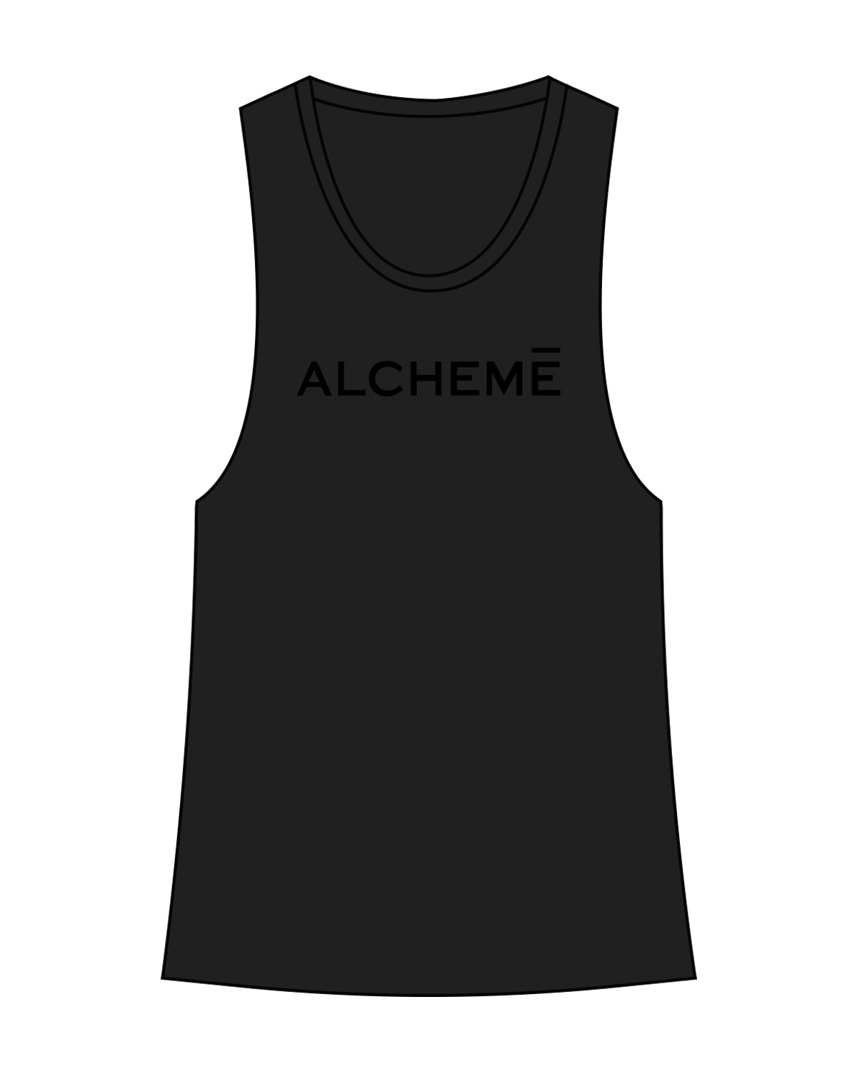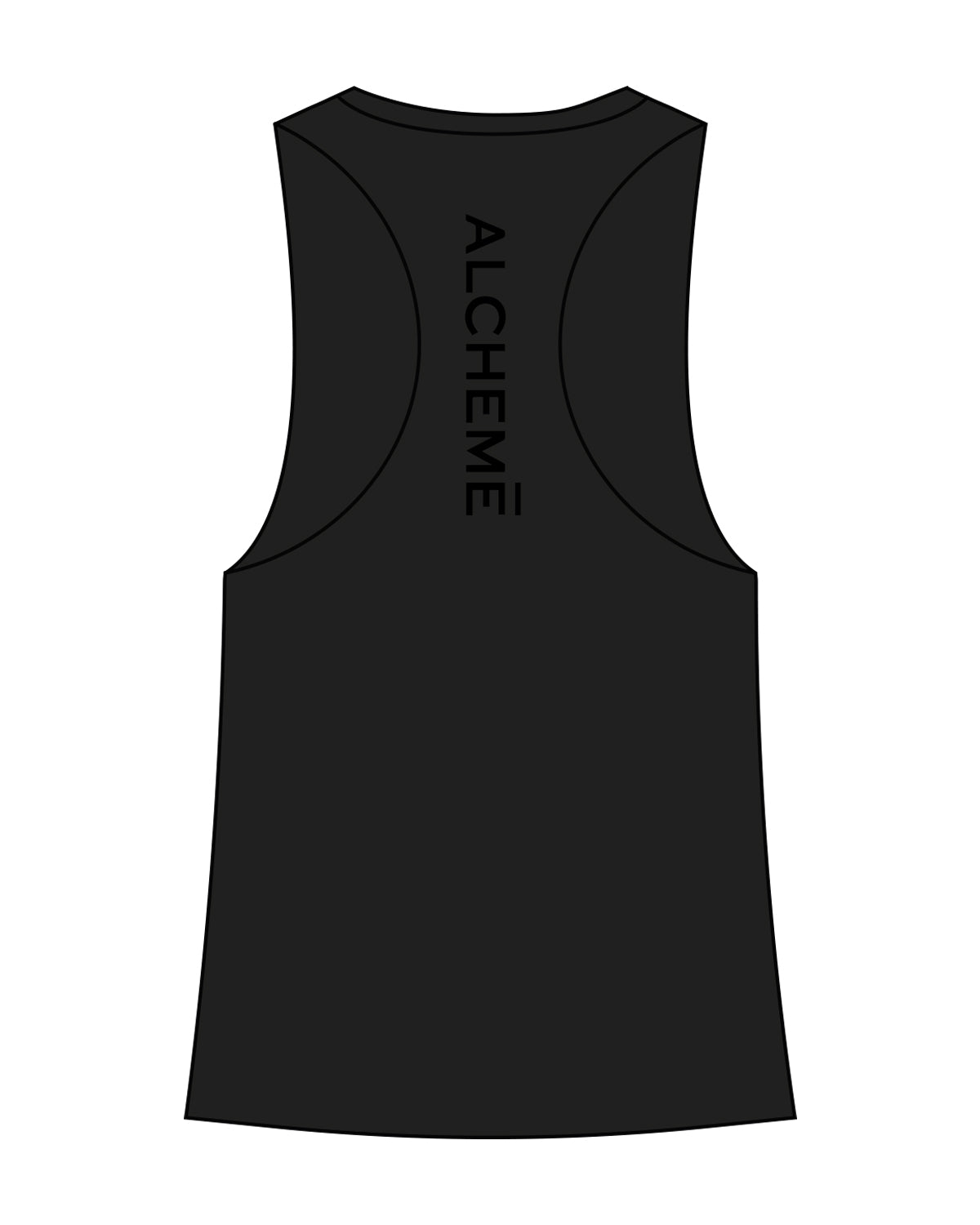 The Womens Racerback Tank - Black - ALCHEME - Center Chest & Back Center Stacked - Black