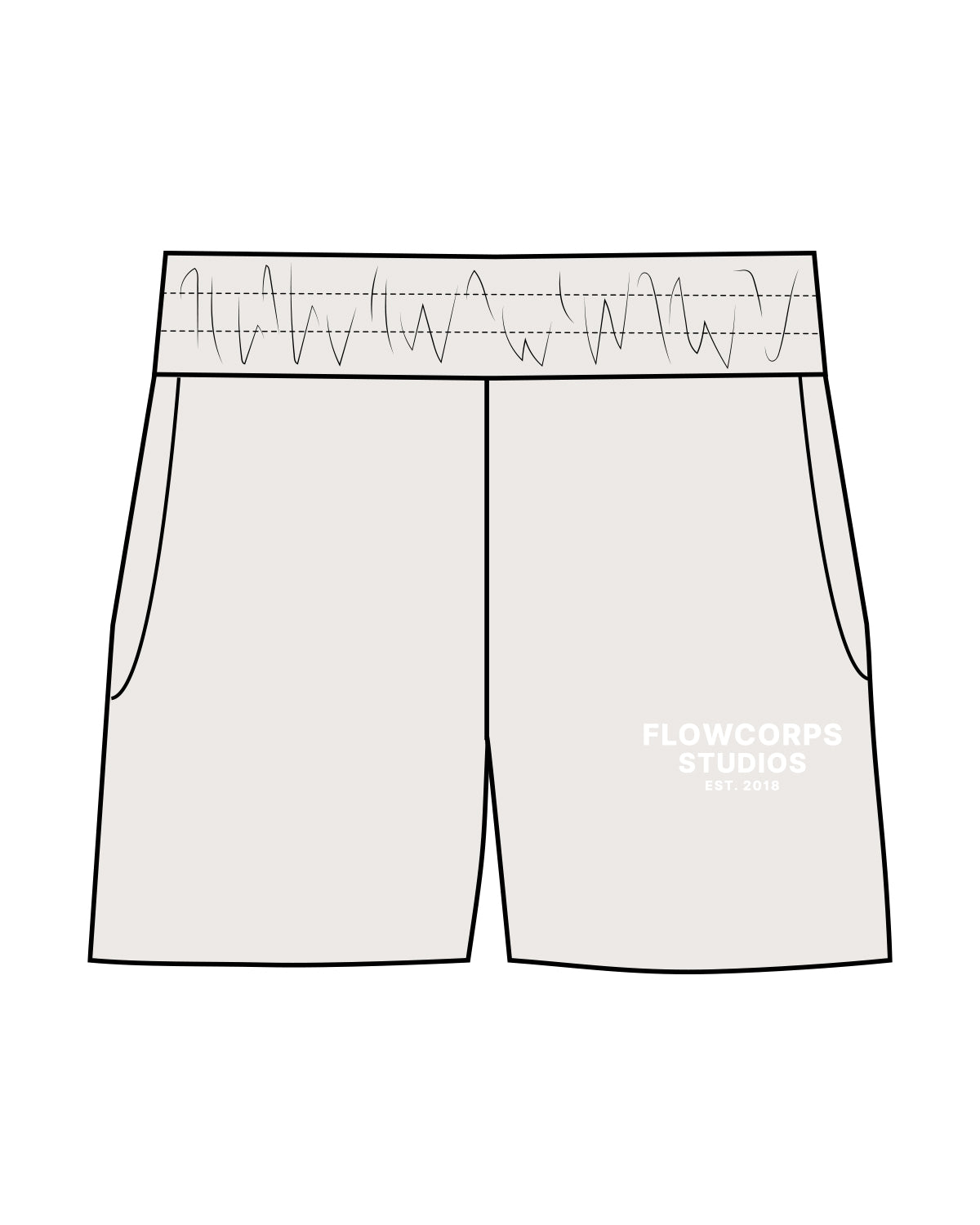 The Womens Sweat Shorts - Bone - Flowcorps - Left Leg Pocket - Puff Print White