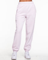 The Womens Sweatpants - Orchid - Flowcorps - Left Leg Pocket Stacked - White
