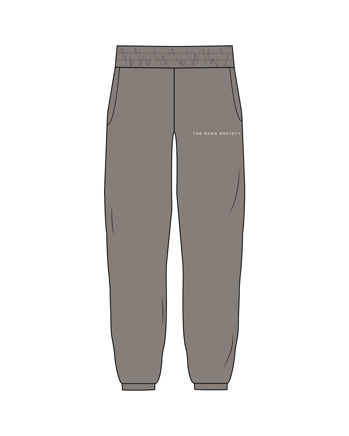 The Mens Sweatpants - Washed Gray - The Burn Society - Left Leg - Below Pocket - Cream
