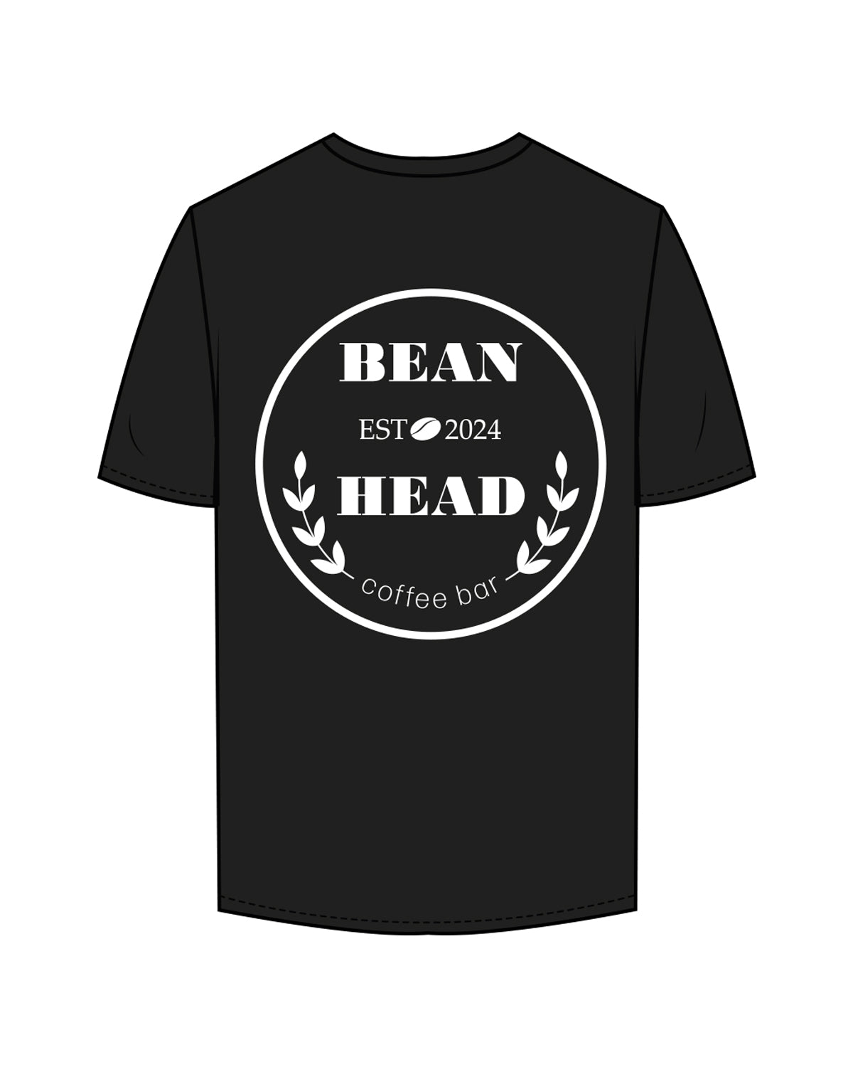 The Womens Tee - Black - Bean Head - Left Chest Stacked & Back Center - Icon - White