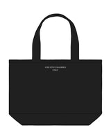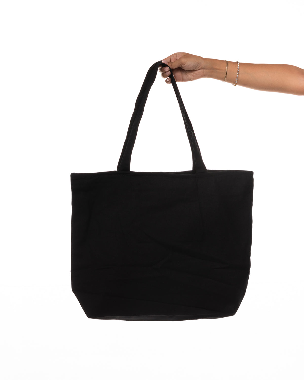 The Zipper Tote Bag - Black - Bianca - Front Top Center Stacked - Embroidered White